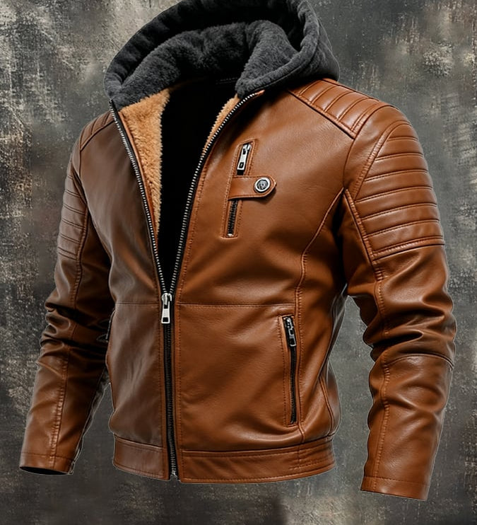 Matej | ZIP JAKNA S UČINKOM KOŽE S PODSTAVLJENOM KAPULJAČOM