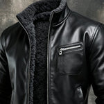Nikola | TOPLA CRNA KOŽNA JAKNA OBLOŽENA SHERPA