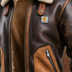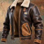 Karlo | TOPLA SMEĐA KOŽNA JAKNA S SHERPA OVRATNIKOM