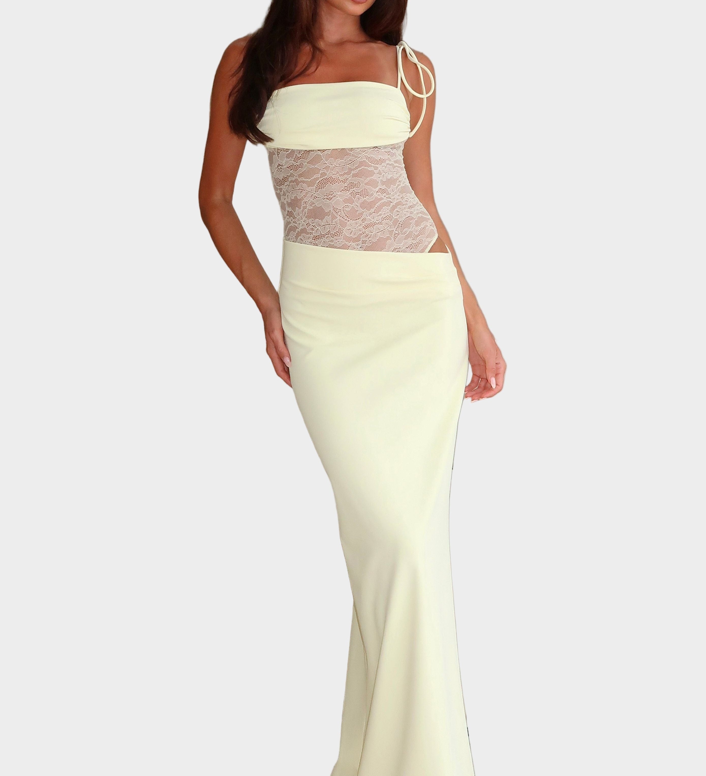 Duga Haljina s Vezanjem oko Vrata i Satenske Teksture
