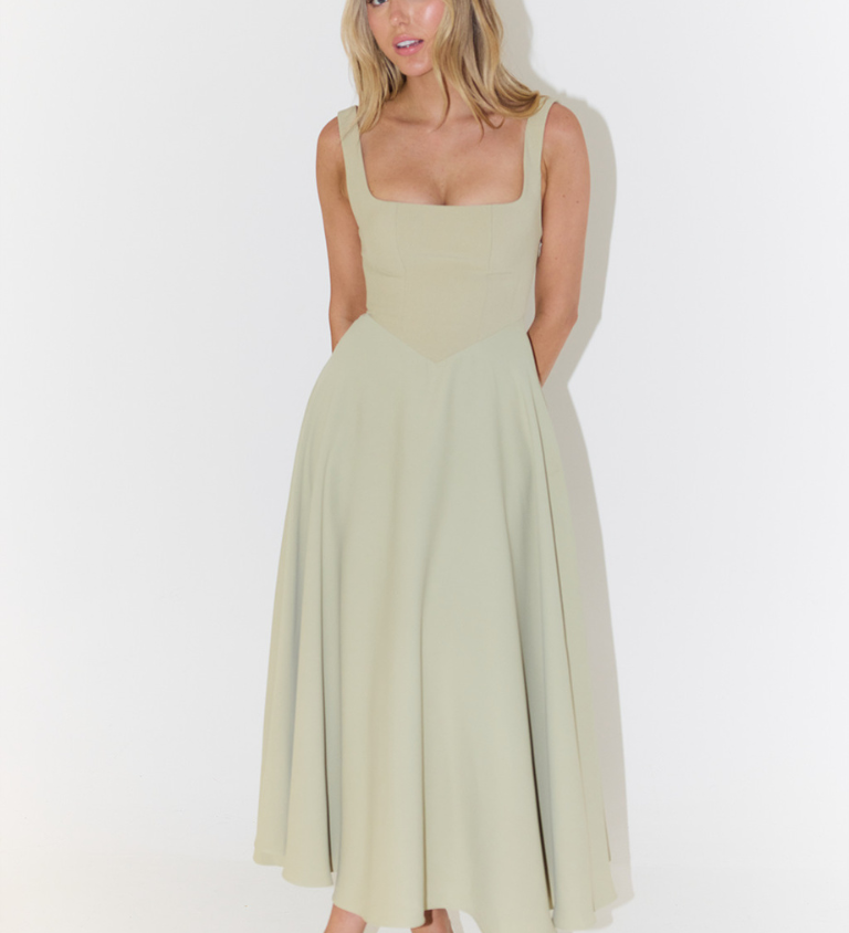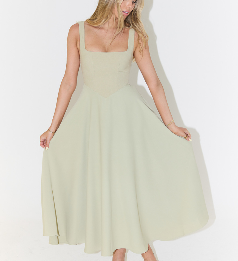 Midi Haljina s Otvorenim Leđima i Korset Dizajnom