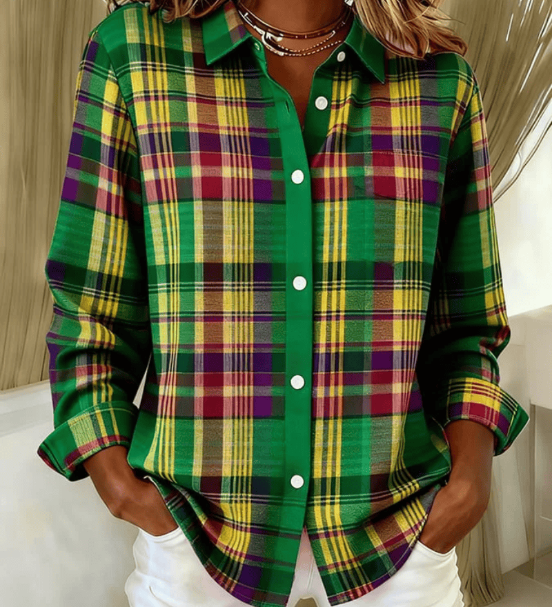 Elina – Geruite bluzica u živopisnim zelenim nijansama