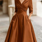 Haljina midi u vintage stilu od satena s drapiranim ovratnikom