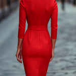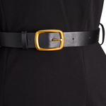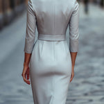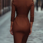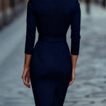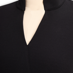 Refinirana Crna Haljina s Pojasom i Mandarin Ovratom