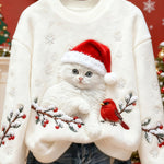 Ženska ležerna flanelna dukserica s umjetničkim printom božićnog mačka
